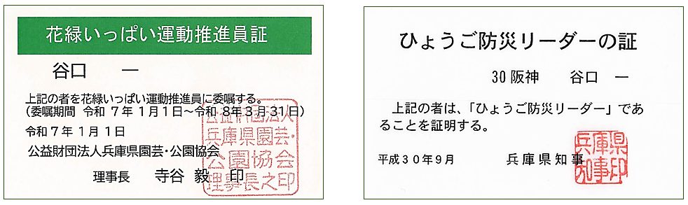 ◆防災士、生涯学習インストラクター(ガーデニング・園芸)、グリーンアドバイザー 等