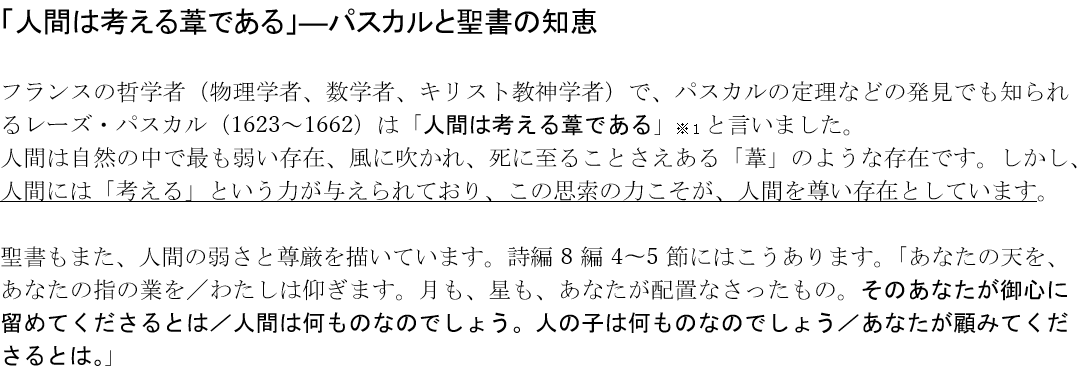 ETC全文 「人間は考える葦である」―パスカルと聖書の知恵共有: Facebook で共有するにはクリックしてください (新しいウィンドウで開きます) Facebook クリックして X で共有 (新しいウィンドウで開きます) X